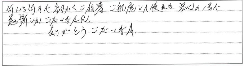 何から何まで細かくご指導ご配慮して頂き安心の一言で感謝しかございません。
