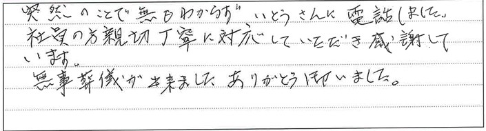 突然のことで何もわからず、いとうさんに電話しました。