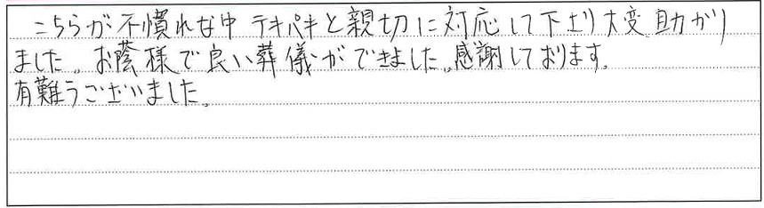 お蔭様で良い葬儀ができました。感謝しております。有難うございました。